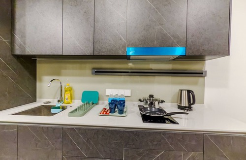 This beautiful apartment can accommodate up to three people, located in the heart of Ampang among KL’s embassy row. Designed for comfort: our unit features a cozy living area, bedroom, and a fully equipped kitchen.